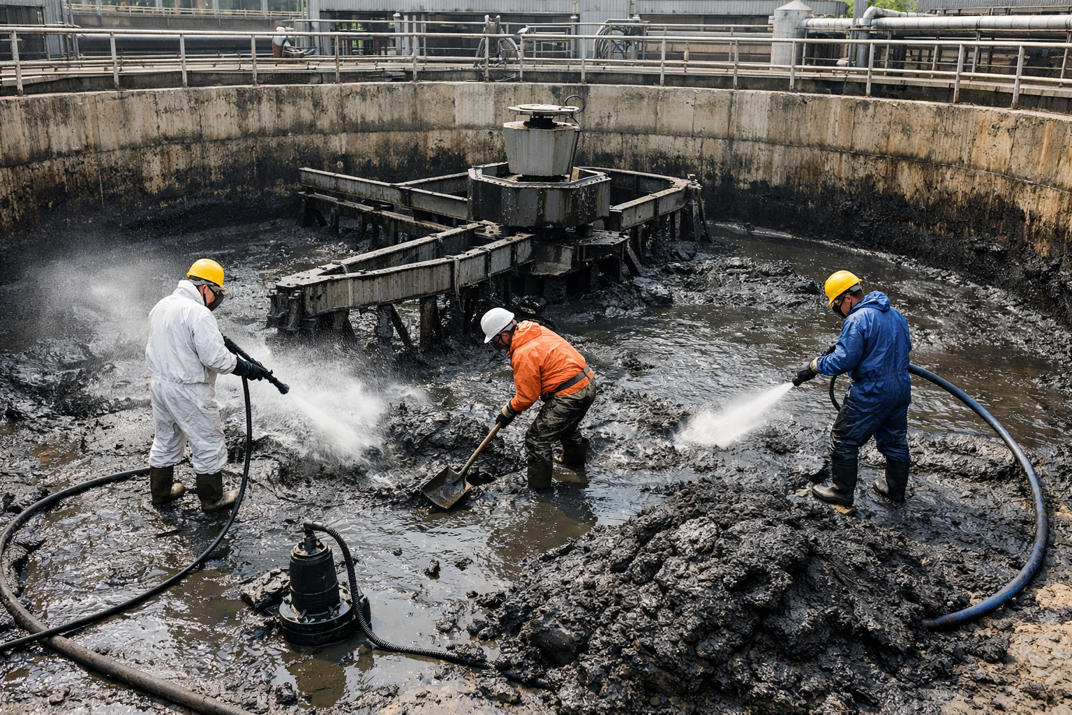 排水中の有機物や懸濁物質が沈殿・分離して溜まり、放置すると悪臭や処理性能の低下につながります。浄化槽を安定して運転するには、定期的な点検と清掃を行い、発生した汚泥を適切に回収して処理する必要があります。